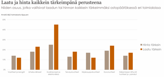 Kuva 1: Laadun merkitys korostuu kodinkoneiden ja elektroniikan ostopäätöksissä.