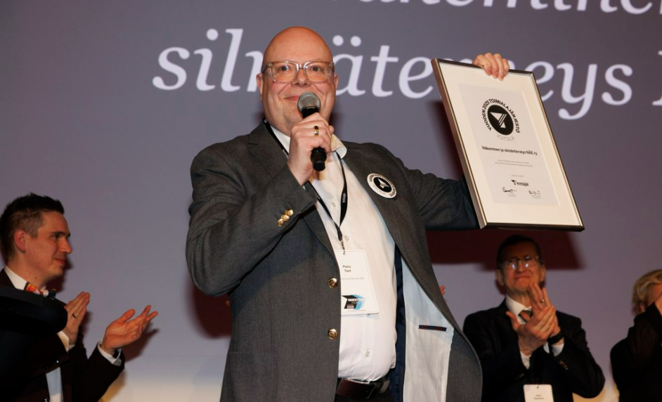 Näe ry:n toimitusjohtaja Panu Tast korostaa yhteistyön merkitystä sääntelyuudistuksen aikaansaamisessa ja omistaa palkinnon koko näönhuollon sektorille.